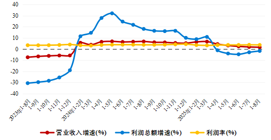 2025年1-8月产业用纺织品行业主要经济指标增速