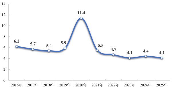 根据国家统计局数据,2025年产业用纺织品行业规模以上企业(非全口径)的营业收入与利润总额分别同比下降2.4%和7.0%;行业毛利率为15.1%,较2024年提升0.3个百分点,营业利润率为4.1%,较2024年回落0.2个百分点(如图1)。
