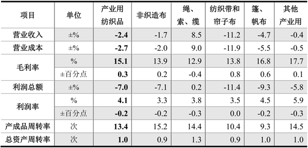 表1 2025年我国产业用纺织品行业主要经济指标增速(规模以上企业)
