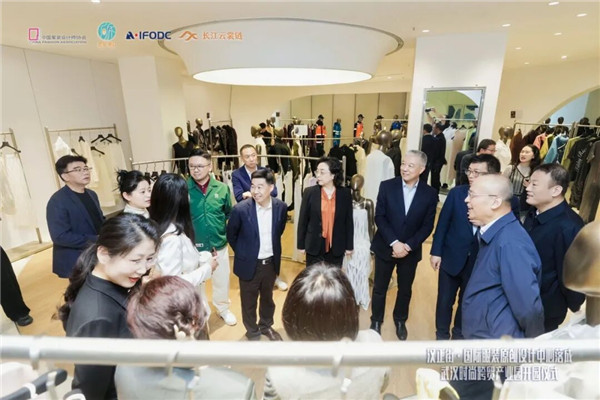 中国服装设计师协会专职副主席杨健、硚口区委书记周耕、武汉市商务局党组书记、局长余力军、长江国贸集团有限公司党委委员、副总经理卞大奎共同为汉正街·国际服装原创设计中心及武汉时尚跨贸产业园揭牌,共同见证两大产业平台正式启用,开启汉正街时尚产业发展新篇章。