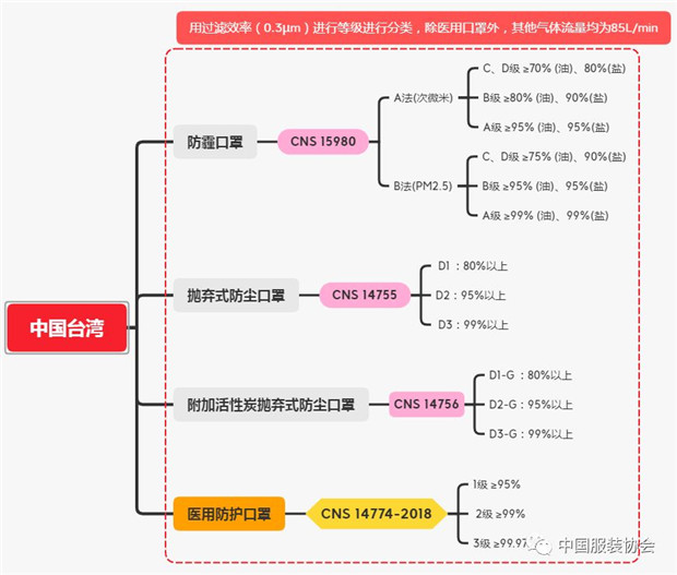 7、中国台湾对于口罩的要求: