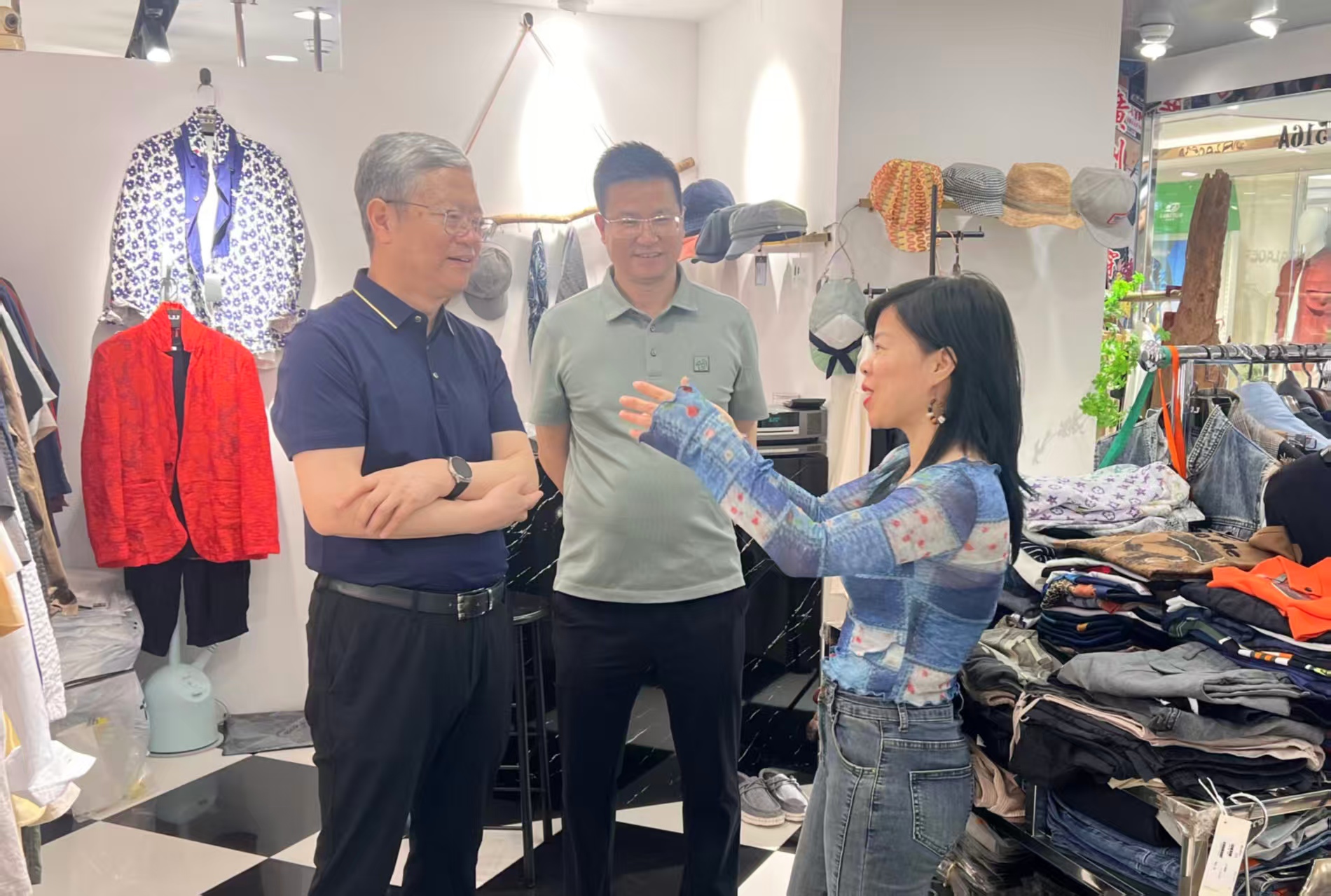 调研组一行实地走访了白马服装市场的核心创新区,重点考察了市场商户经营状况、品牌孵化成果及新商业模式打造等。广州白马服装市场作为纺织服装产业流通领域的创新引领者,近年来积极推动原创设计、品牌升级和数字化转型,培育了一批具有市场竞争力的本土服装品牌。夏令敏对广州白马市场在促进产业升级、服务中小品牌商户等方面取得的成效表示充分肯定,并指出:“专业市场是纺织服装产业链的重要枢纽,广州白马的创新实践为行业提供了宝贵经验。”