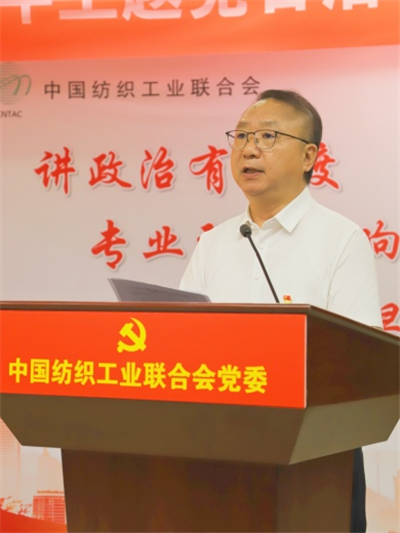 中国纺联全体领导班子成员,党委委员、纪委委员、监事会负责人,各直属基层党组织书记,各部门、各单位主要负责人,中国纺联工会正副主席,团委书记70余人参加会议。会议由中国纺联党委副书记、会长孙瑞哲主持。