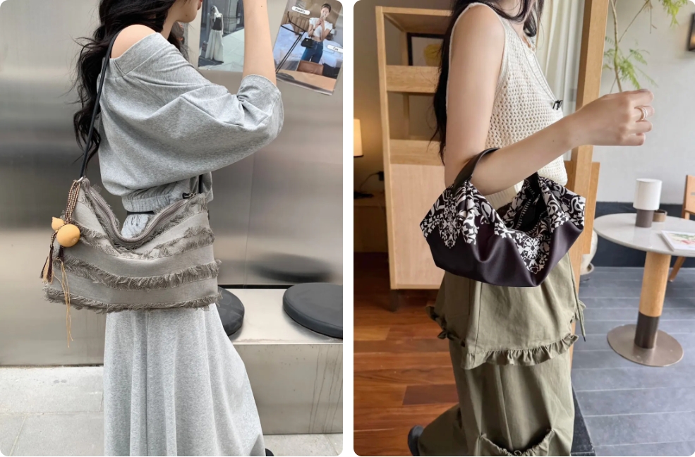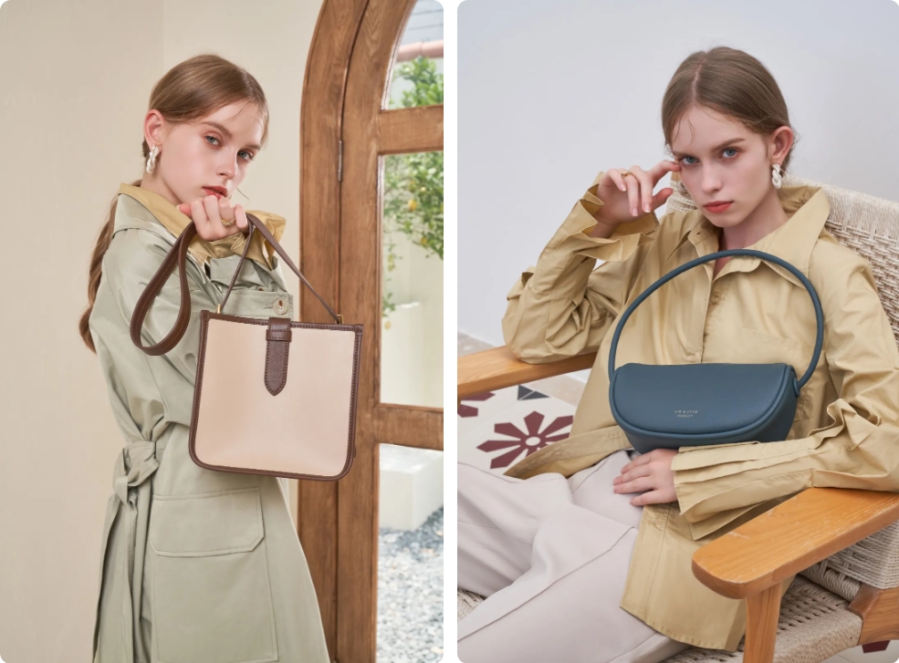 睐可 D.M & STYLE专注皮具艺术,赋能品牌价值。深耕行业十二年,从国际品牌服务商到自主品牌创造者,以专业团队、强大供应链为根基,融合复古绗缝、极简廓形等多元风格,打造通勤托特包、宴会手拿包等轻奢女包。意大利植鞣革与环保工艺加持,赋予每一件作品天然呼吸感。