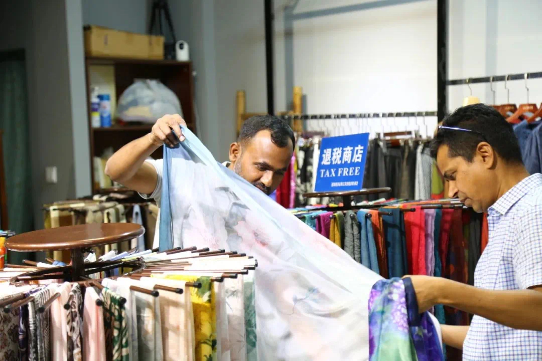 当天,孟加拉国客商在盛泽东方纺织城工作人员指引下顺利完成商品选购、结算、开票及退税申请,形成“商贸—购物—旅游—退税”的消费闭环,进一步打通了丝绸纺织产业与国际市场的便捷通道。这标志着政策红利正在转化为城市能级提升的强劲动能,传统纺织重镇也在加速蜕变为兼具产业厚度与国际开放度的消费新地标。