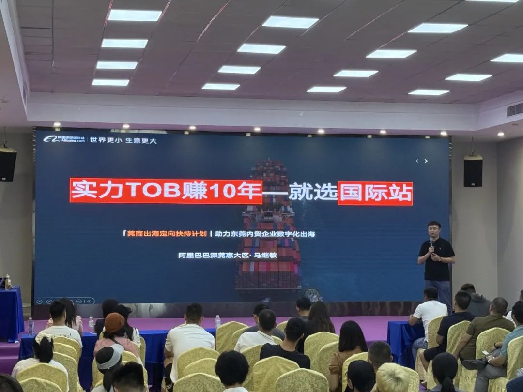 阿里巴巴国际站东莞区域经理马继敏深入解读了平台最新的“数字化出海扶持专项”政策。他重点分析了如何利用国际站平台优势,整合资源,实现轻资产、低风险的“零库存外贸”新模式,有效降低企业出海门槛。