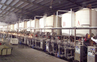 公司在政府的资助下,进行“染色设备(染缸)保温技术”的研发,以助厂房降低染缸热量散失,达节能降耗目的。该项目采用高压无气喷涂设备,将工业隔热涂料喷涂于染缸外表面,形成厚约3毫米的隔热层,外加一层防水墙面漆,减少染缸热量散失。厂内20台先进的气流染缸先后采用此保温技术,可减少染缸热能散失量18.9%,20台染缸一年能节省蒸汽达16800吨及开支逾234万元。而喷涂投入费用,更可在一年内收回。