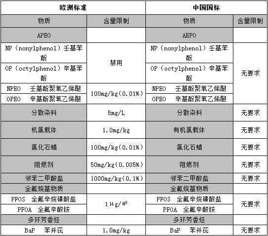 根据专家介绍,下面列举了几项婴幼儿服饰欧洲标准和中国国标的对比。