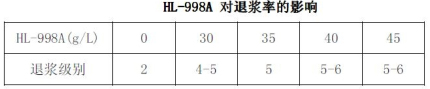 保持HL-998B、HL-998C用量不变,改变998A的浓度研究其退浆效果。