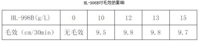 保持HL-998A、HL-998C用量不变,改变998B的浓度研究其毛效效果。