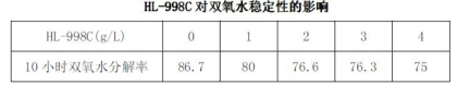 HL-998C的主要功能是提高双氧水的稳定性,通过以上实验数据可以看出,该助剂的浓度变化,对双氧水的分解率影响不大,为安全起见,使用烟台源明化工推荐的用量和双氧水用量。