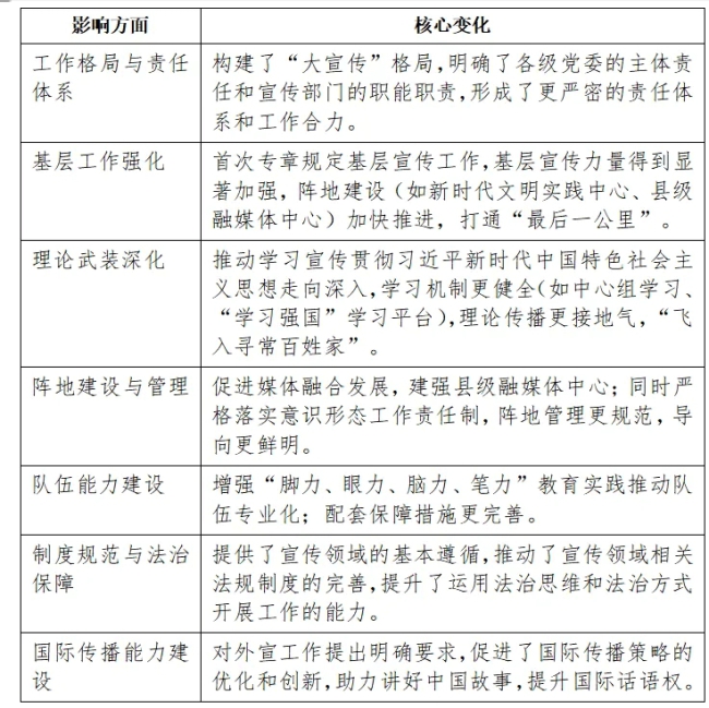 回顾《中国共产党宣传工作条例》2019年印发以来对宣传工作的全面重塑,可以帮助我们来理解《中国共产党思想政治工作条例》的重要意义和重大影响。