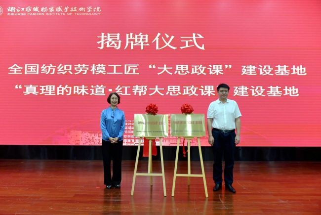 ![]() ![]() ![]() 活动中,邢冠蕾、黄琪共同为“全国纺织劳模工匠‘大思政课’建设基地”和“‘真理的味道·红帮大思政课’建设基地”揭牌,陈金辉、黄琪共同为全国劳模工匠们颁发“红帮匠心匠艺导师”“产业教授”“宁波市纺织工匠学院导师”聘书,王春红、高婷婷共同签署《“全国纺织劳模工匠进校园”暨“真理的味道・红帮大思政课”活动共建合作协议》。