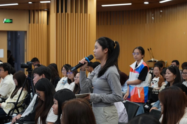 ![]() 方斌以《匠心智纺——科技赋能传统产业转型升级》为题,分享了如何用科技赋能毛纺车间实现“老产业”跑出“新赛道”,希望同学们明确自身定位,做好人生规划,学好专业技能,提高综合能力,实现“把根扎在传统的土壤里,把枝伸向未来的天空”的愿景。