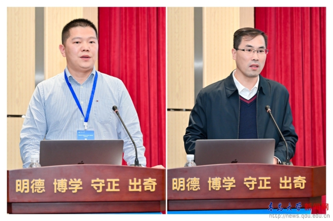 思政宣讲环节,青岛大学辅导员李明栋、朴博文、王嘉伟、孙蕾,本科生阿布都拉·木塔力甫、研究生张晓涵分别以《中国人的“大心脏”》《冰山上的守护者》《明月照征程》《歌声里的中国》《回家》《无名》为主题,向代表们呈现了充满信仰之力的强国青年说“大思政课”。