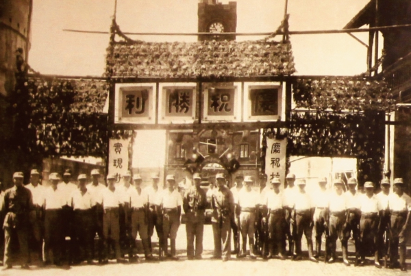 ![]() 抗战胜利大生纱厂搭起凯旋门